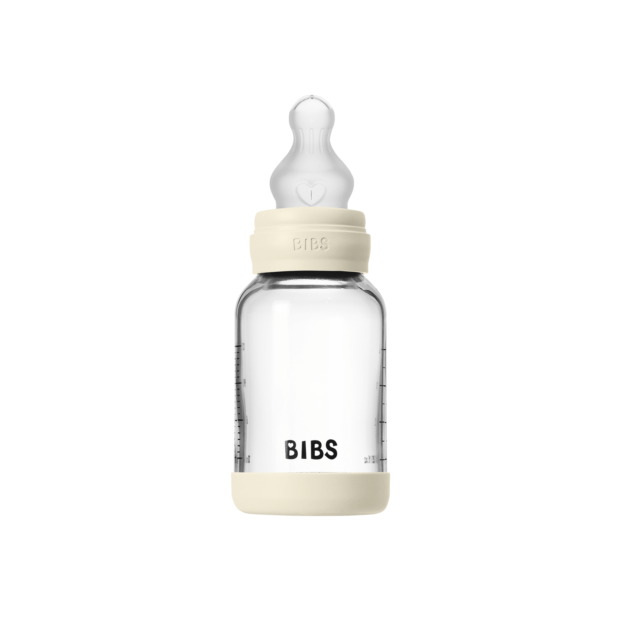BIBS - Glas sutteflaske rund Silicone Slow Flow - Ivory - 120 ml