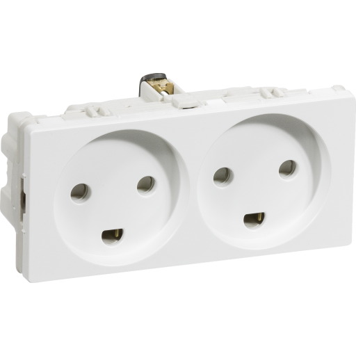 Lauritz Knudsen LK FUGA, Vandret dobbelt stikkontakt med jord og to tndinger, 2 modul, hvid -
