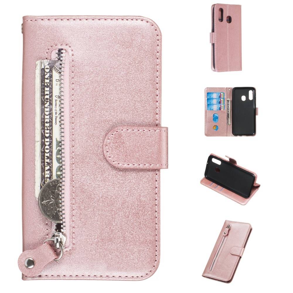 Samsung Galaxy A40 - Læder cover / pung med udvendig lomme - Rosa guld