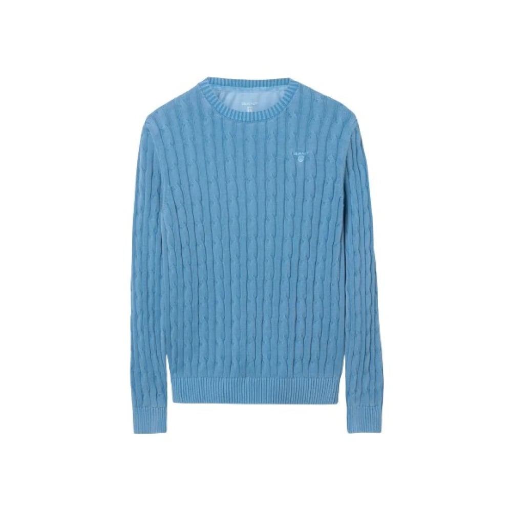 Gant, Strik , Herre, Blå, L, Bomuld, Sunbleached Cable Crew Sweater