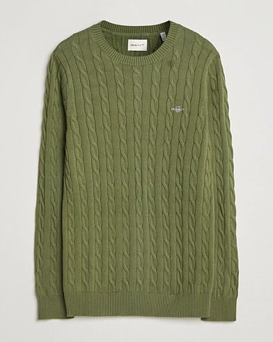 GANT Cotton Cable Crew Neck Pullover Dry Herb Green