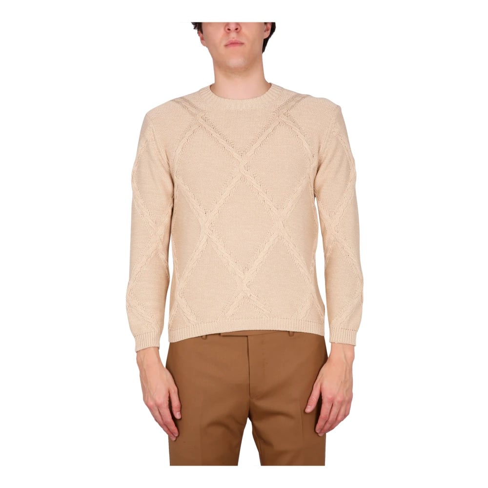 Ballantyne, Strik , Herre, Beige, XL, Bomuld, Cotton Cable Stitch Crew Neck Sweater