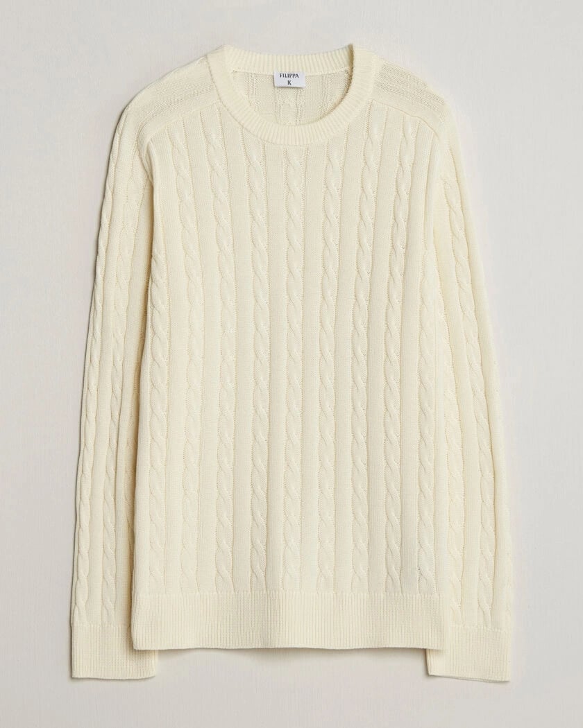 Filippa K Cotton Cable Crew Neck Sweater Calico White