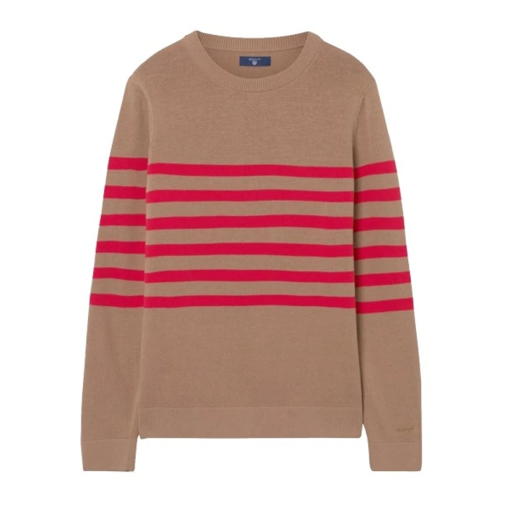Gant, Strik , Dame, Brun, S, Uld, Stribet sweater med ribstrikket krave