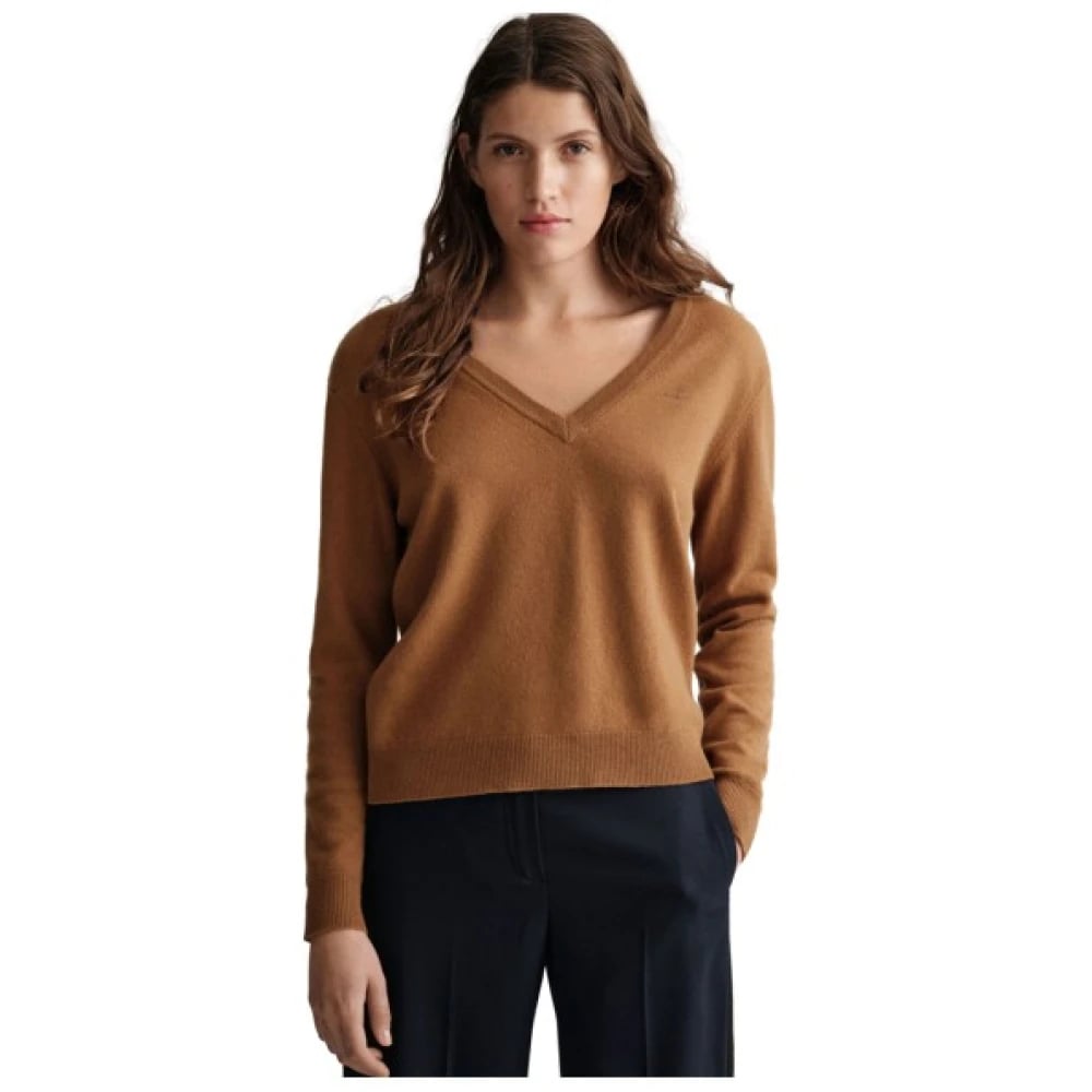 Gant, Strik , Dame, Beige, M, Linned, V-hals Linned Blandet Afslappet Sweater