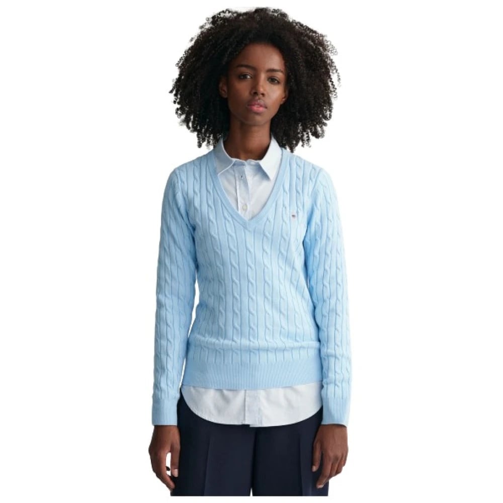 Gant Stretch Cotton Cable V-neck Sweater (Dame)
