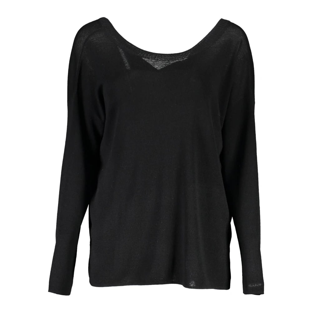 Gant, Strik , Dame, Sort, S, Uld, Sort Kvinders Sweater Langærmet Rund Hals