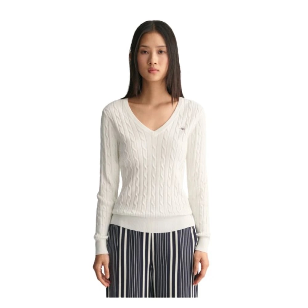 Gant, Strik , Dame, Hvid, XS, Bomuld, Twisted Cotton V-Neck Sweater