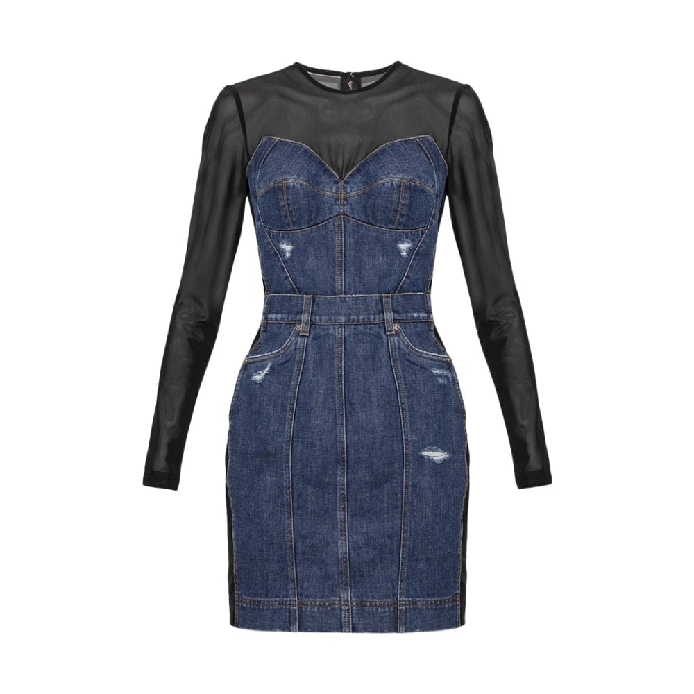 Dolce & Gabbana, Kjoler , Dame, Blå, XS, Kjole med gennemsigtige indsatser