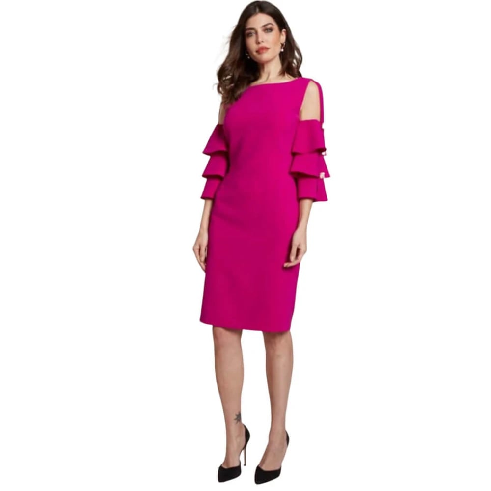 Moskada, Kjoler , Dame, Lilla, L, Uld, Elegant Dagskjole med Gennemsigtige Detaljer og Rynkede Ærmer - Størrelse 44