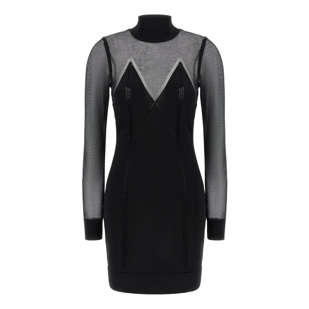 Elisabetta Franchi, Kjoler , Dame, Sort, XS, Bomuld, Mini Kjole i Strikstof med Gennemsigtige Detaljer
