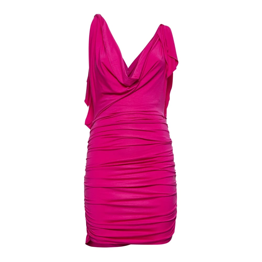 The Attico, Kjoler , Dame, Lyserød, S, Fuchsia Draperet Kjole med Gennemsigtige Stropper