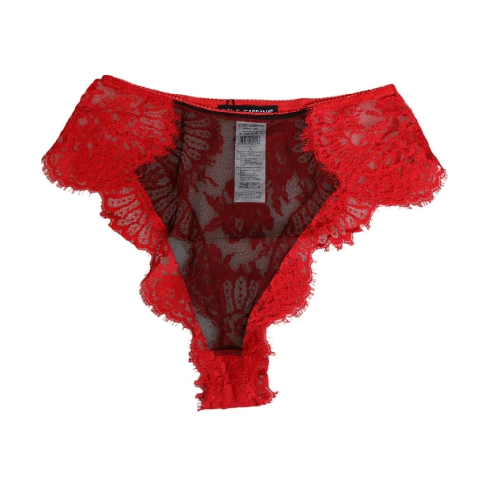 Dolce & Gabbana, Undertøj , Dame, Rød, S, Bomuld, Rød Blomstret Blonde Gennemsigtige Trusser