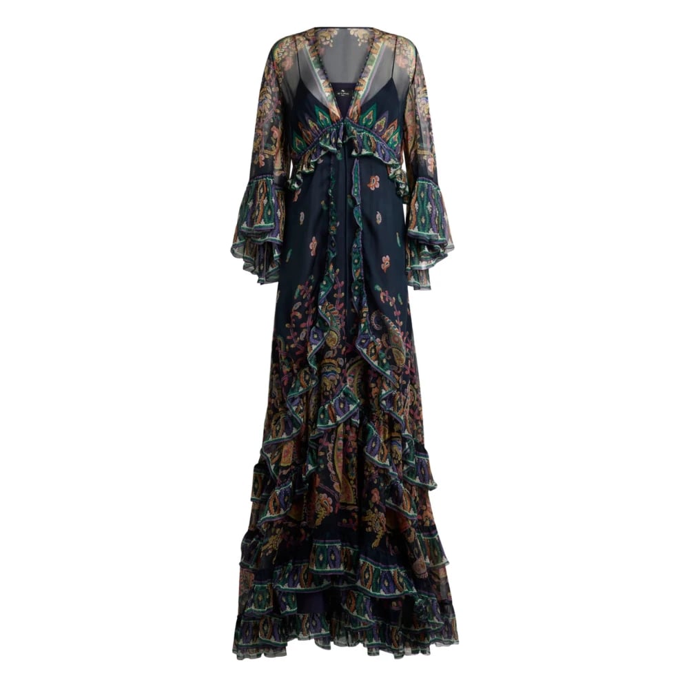 Etro, Kjoler , Dame, Flerfarvet, S, Maxi Flared Kjole Med Gennemsigtige Ærmer