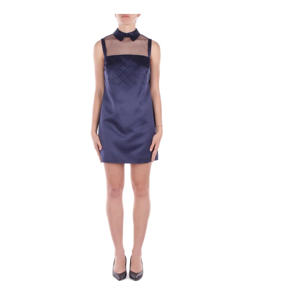 Elisabetta Franchi, Kjoler , Dame, Blå, M, Polyester, Blå Kjoler med Gennemsigtige Detaljer