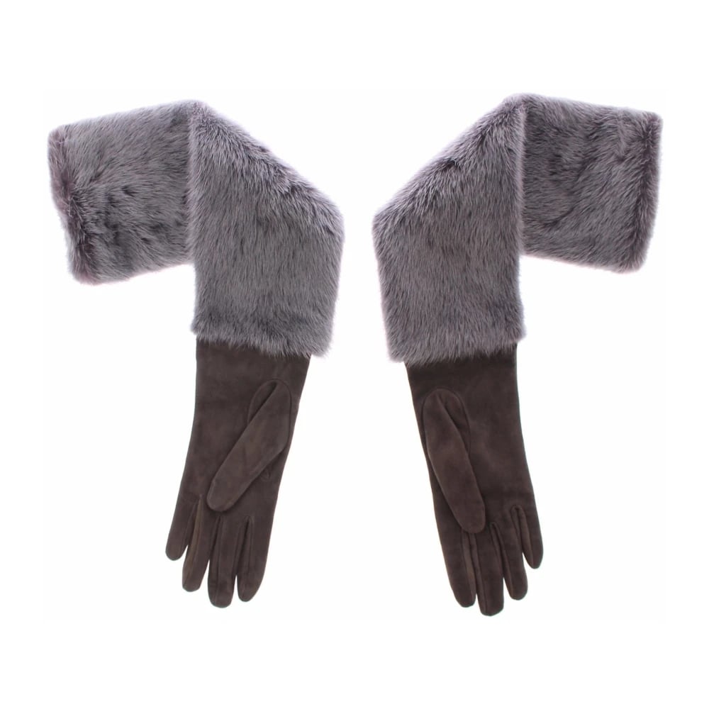 Dolce & Gabbana, Accessories , Dame, Grå, 7 1/2 IN, Læder, Grå Minkpels Lammeskind Ruskindshandsker