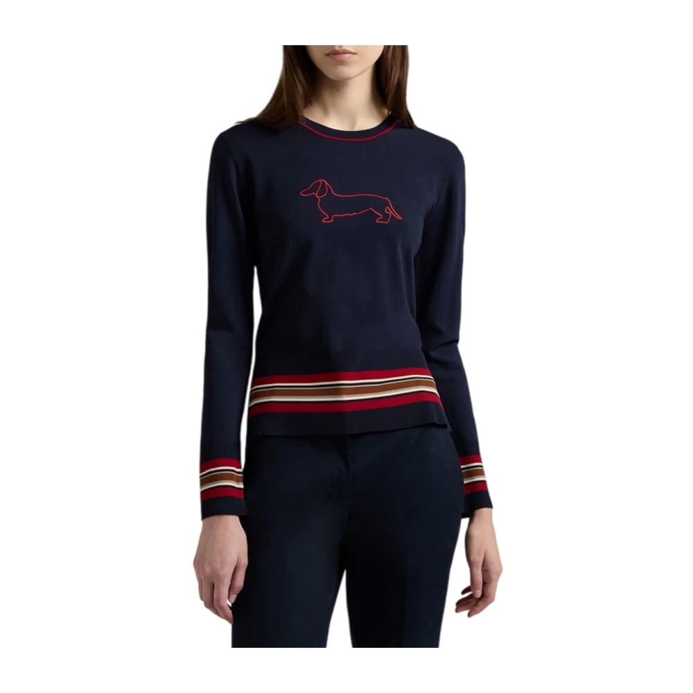 Harmont & Blaine, Strik , Dame, Blå, XL, Uld, Rundhalset top med en Maxi Gravhund