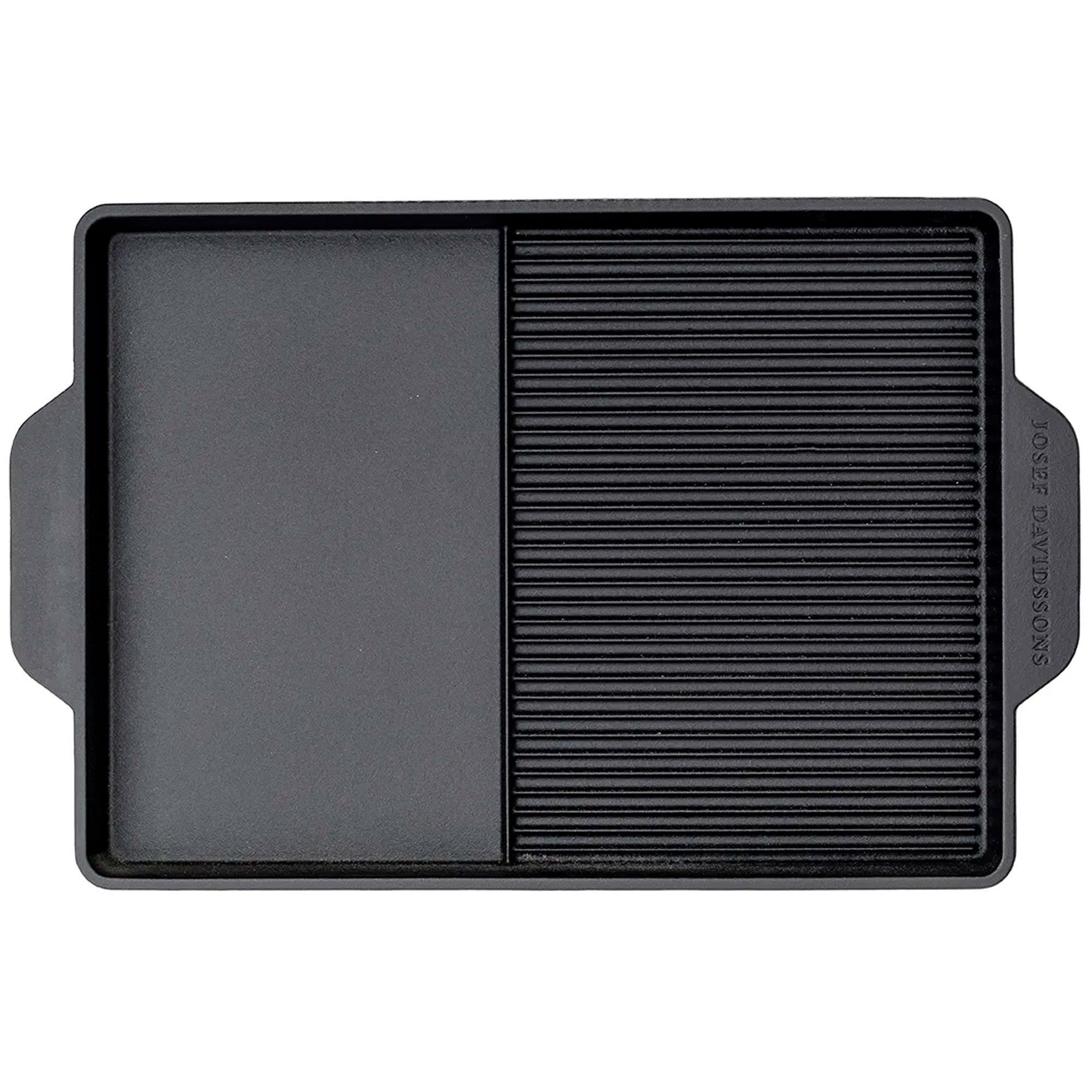 Vendbar grillplade i støbejern med grill- og stegeoverflade - 40x20 cm