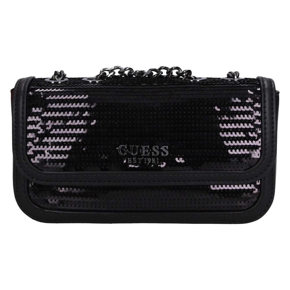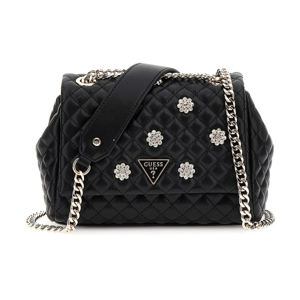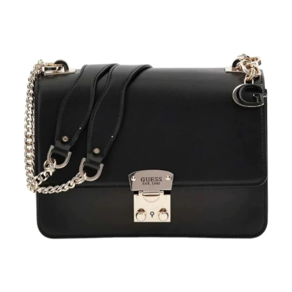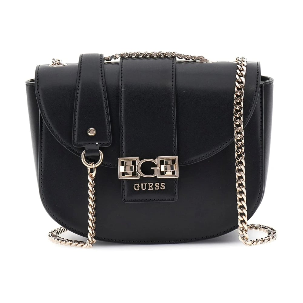 Guess, Tasker , Dame, Sort, ONE SIZE, Uld, Sort Flap Taske med Kæde Strop
