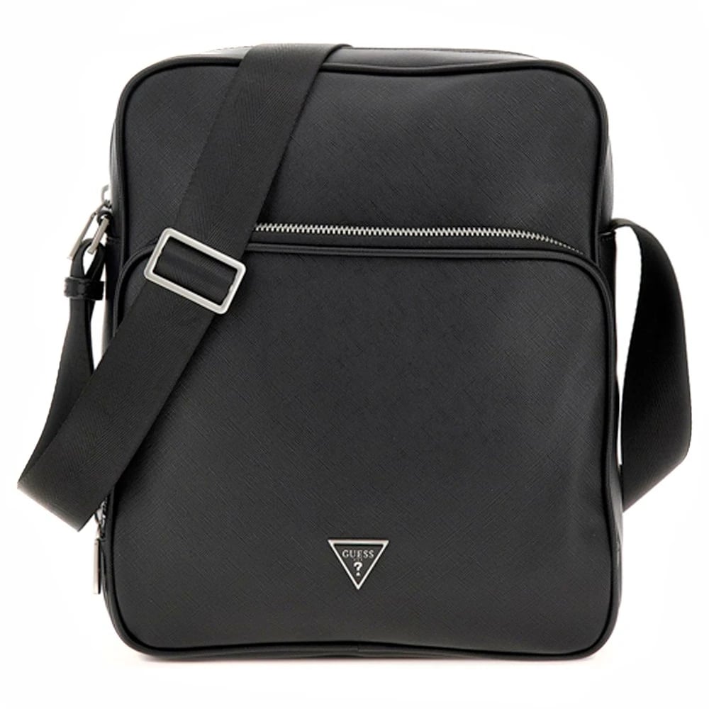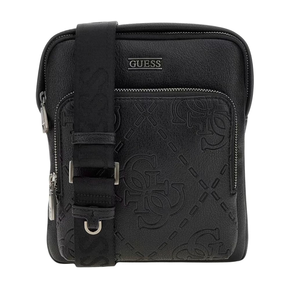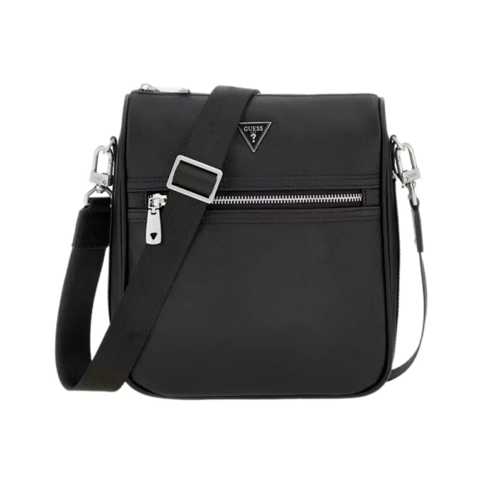 Guess, Tasker , Herre, Sort, ONE SIZE, Uld, Stilfuld Saffiano Crossbody Taske