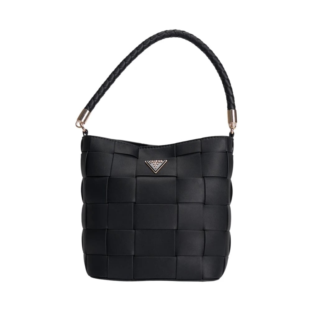 Guess, Tasker , Dame, Sort, ONE SIZE, Læder, Sort vævet spand taske med logo