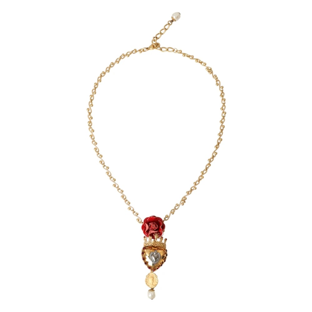 Dolce & Gabbana, Accessories , Dame, Gul, ONE SIZE, Uld, Guld Krystal Hjerte Charme Halskæde
