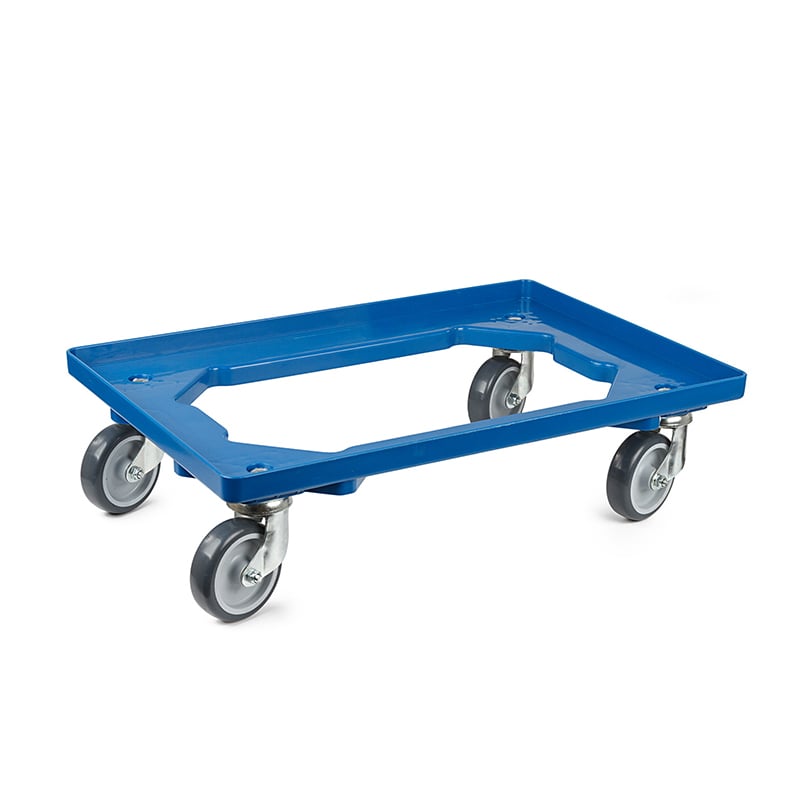 Transportvogn i plast åben type blå med 4 drejelige gummihjul