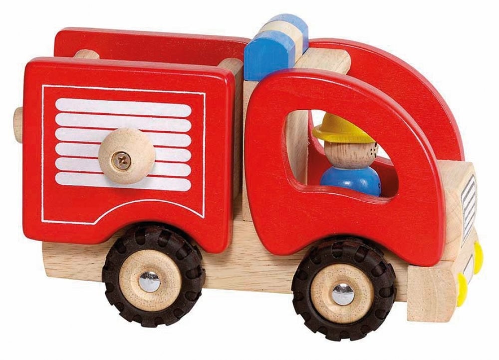 Goki Træbil - Brandbil med gummihjul - 17 cm - Fra 2 år.