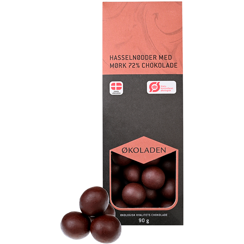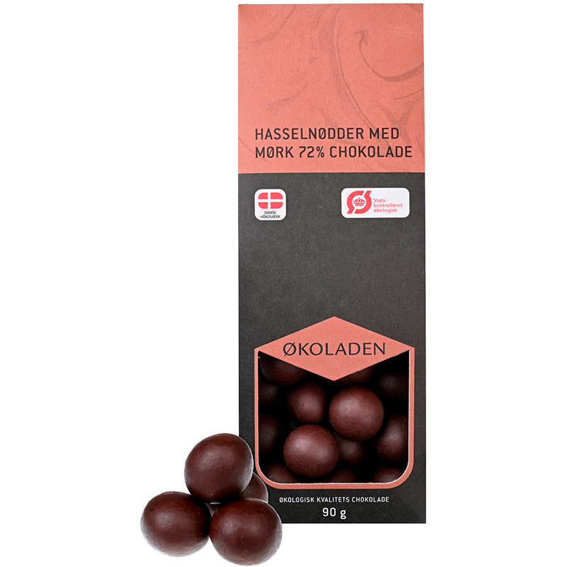 Økoladen Hasselnødder m. 72% Mørk Chokolade Ø, 90g.