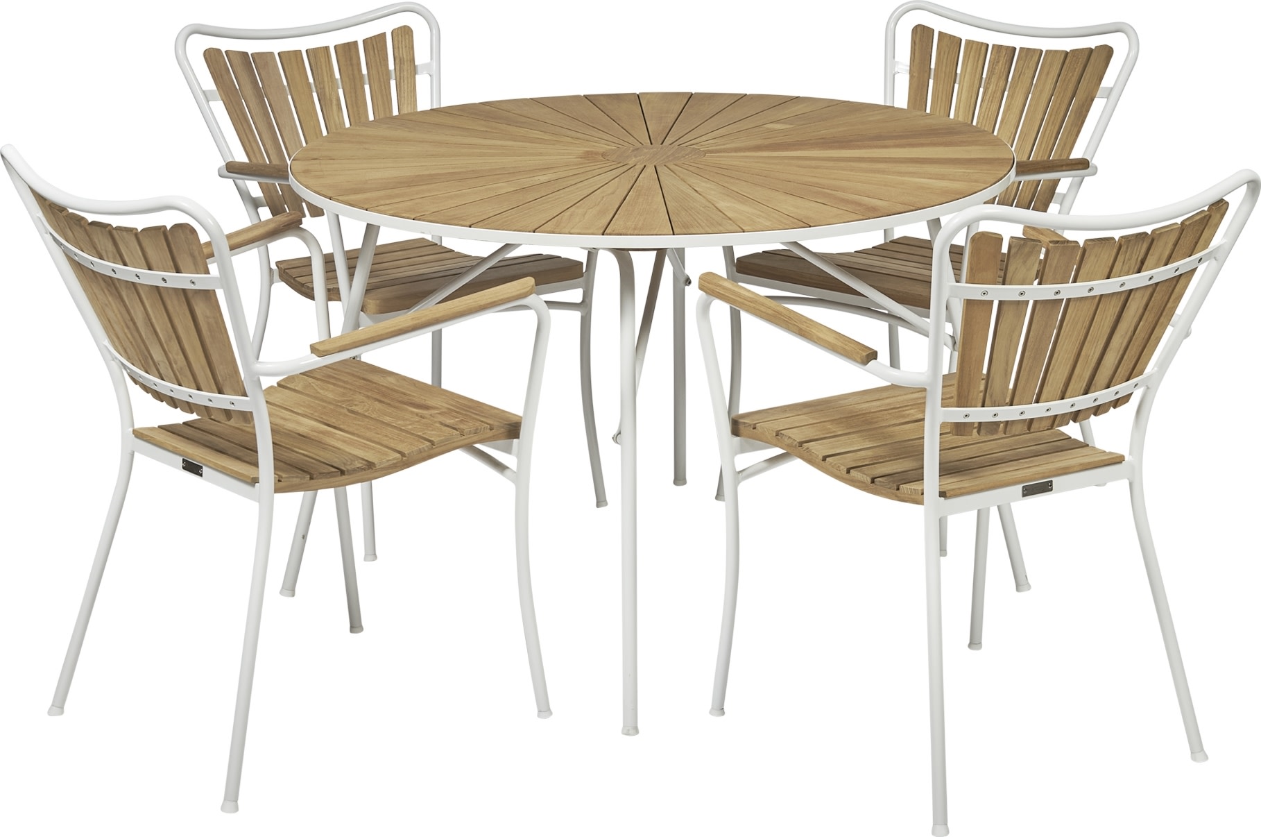 Marguerit havebord ø120 cm + 4 stole, Hvid