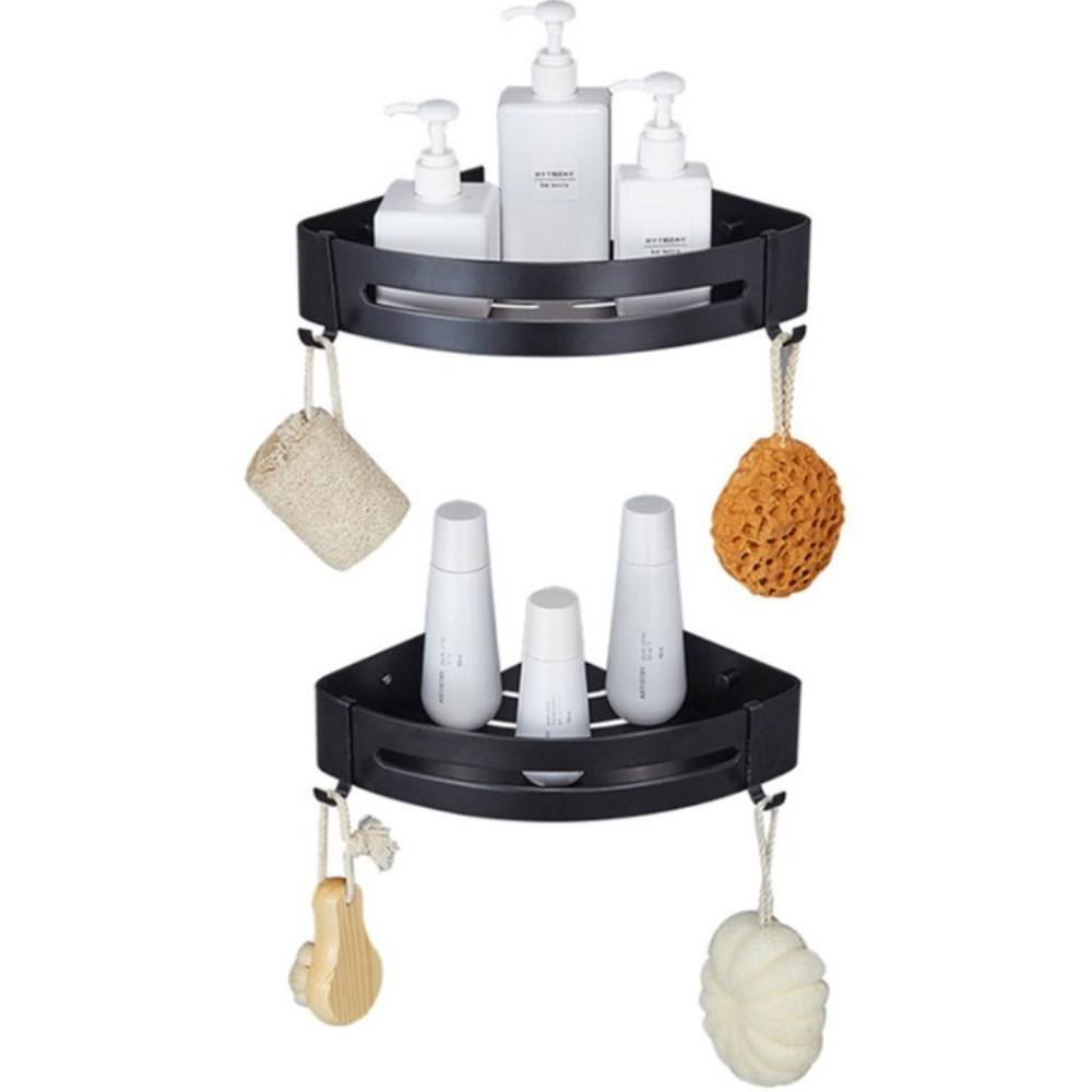 Hjørnehylde til brusekabine i aluminium - Sort - Sæt med 2 stk.