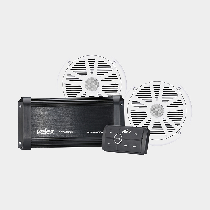 Højttalerpakke Velex Marine Bluetooth Kit, med 2 hvide højttaler + 1 forstærker + 1 kontrolpanel