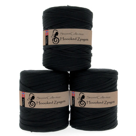 Medium Hoooked Zpagetti trikågarn 900g svart – Black shades ZP005-01