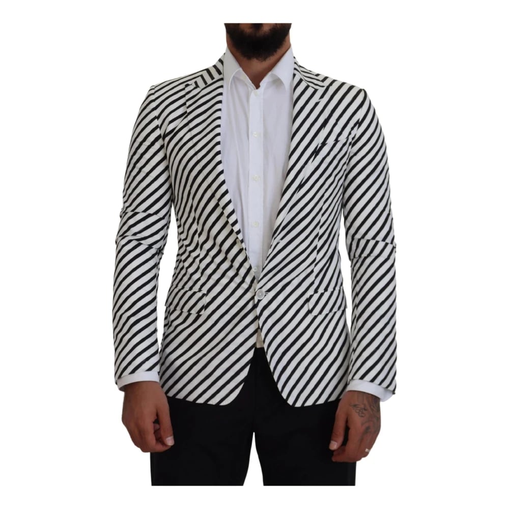 Dolce & Gabbana, Jakker , Herre, Sort, S, Bomuld, Hvid Stribet Blazer Jakke Sport Stil