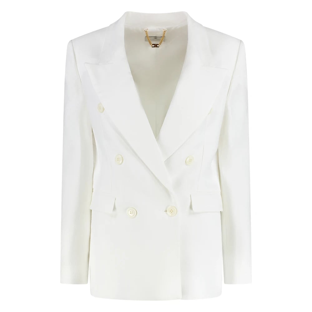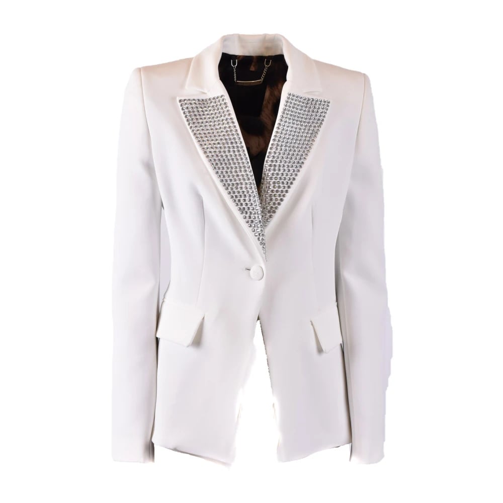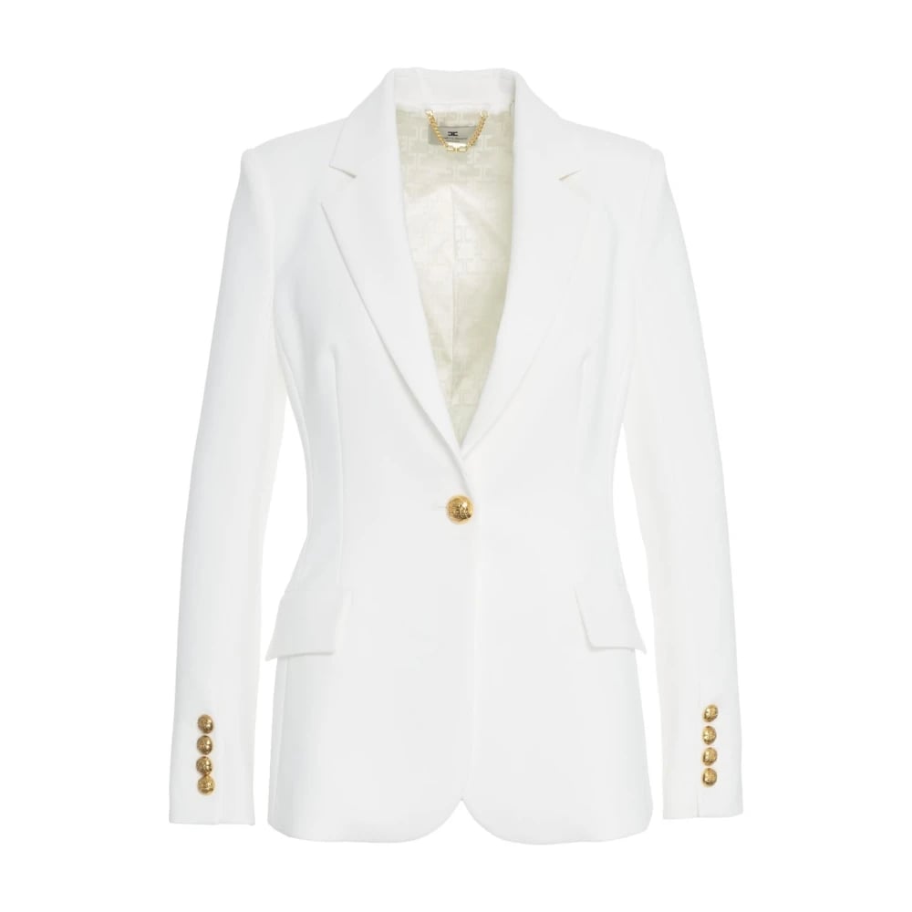 Elisabetta Franchi, Jakker , Dame, Hvid, S, Hvid Blazer Med Knapper Klassiske Revers