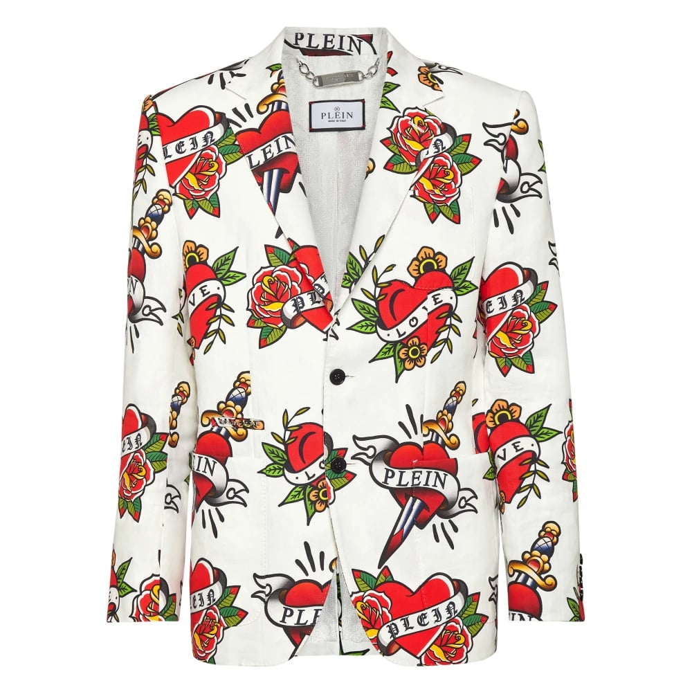 Philipp Plein, Jakker , Herre, Hvid, L, Linned, Blazer Love