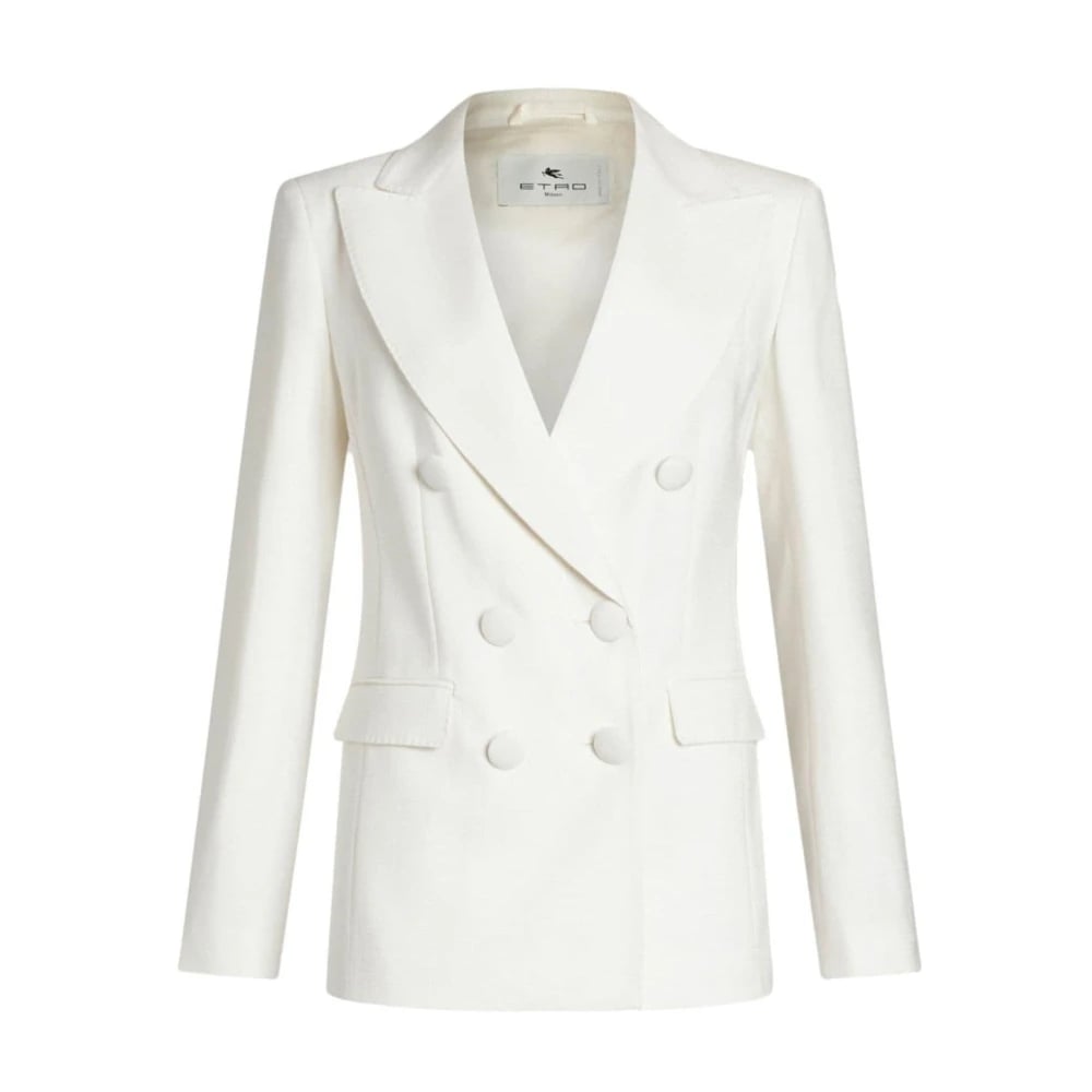 Etro, Jakker , Dame, Hvid, M, Dobbeltbrystet blazer med peak revers