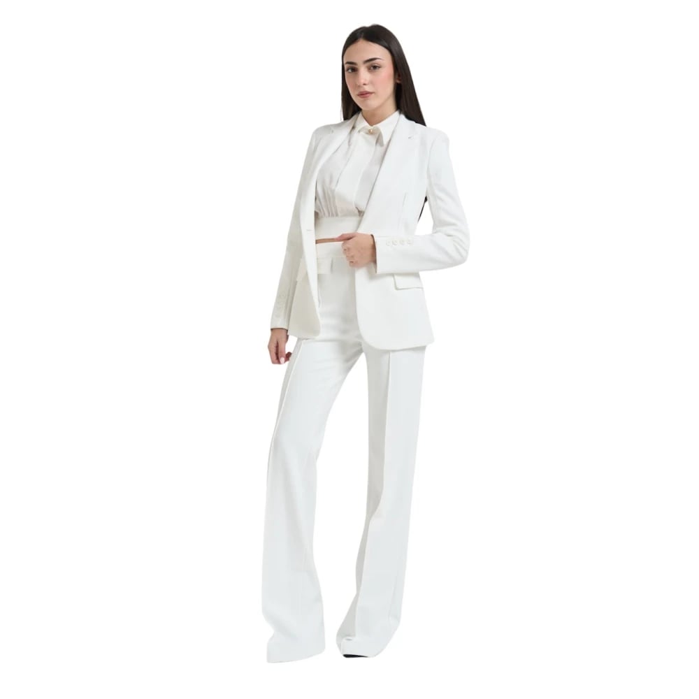 Elisabetta Franchi, Jakker , Dame, Hvid, XL, Uld, Hvid Crepe Blazer med Gyldne Detaljer