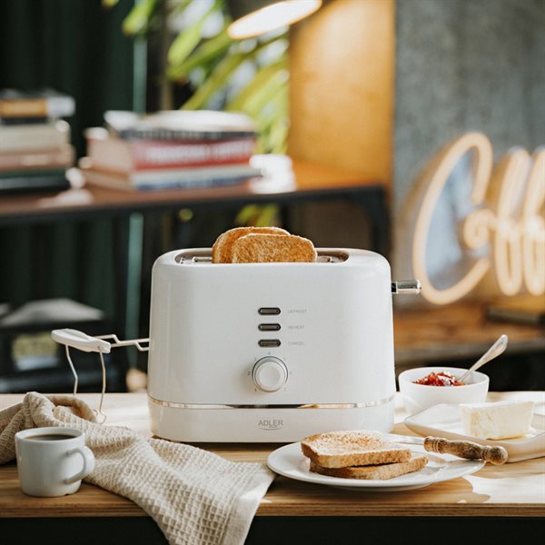 Brødrister med brødhylde, 6 ristningsniveauer og kompakt design - Hvid