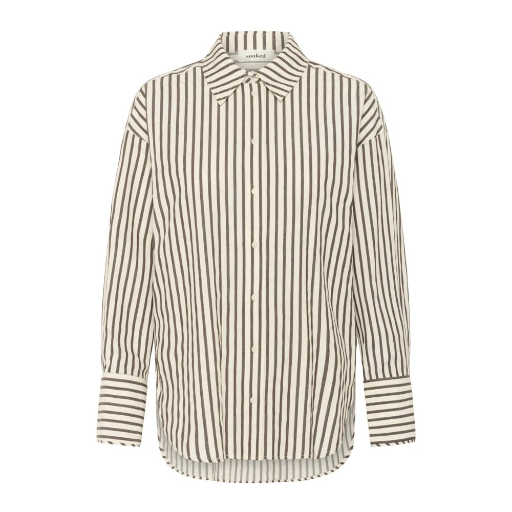 Soaked in Luxury, Bluser og skjorter , Dame, Beige, L, Bomuld, Stribet Skjorte Hvid & Chokolade Torte