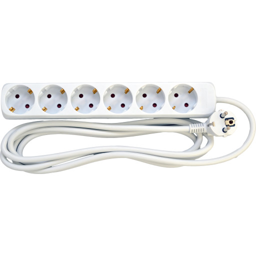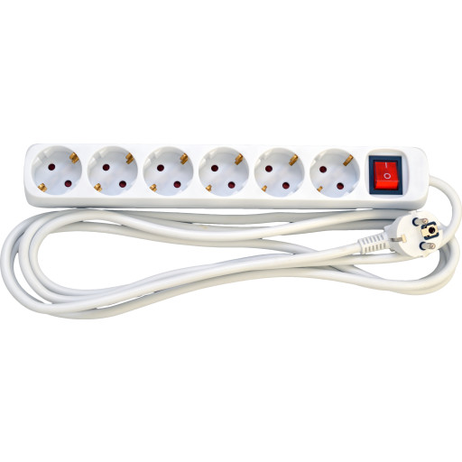 vrige Stikdse m. afbryder, 6 udtag, m/jord, hvid, 3 meter ledning stikprop -