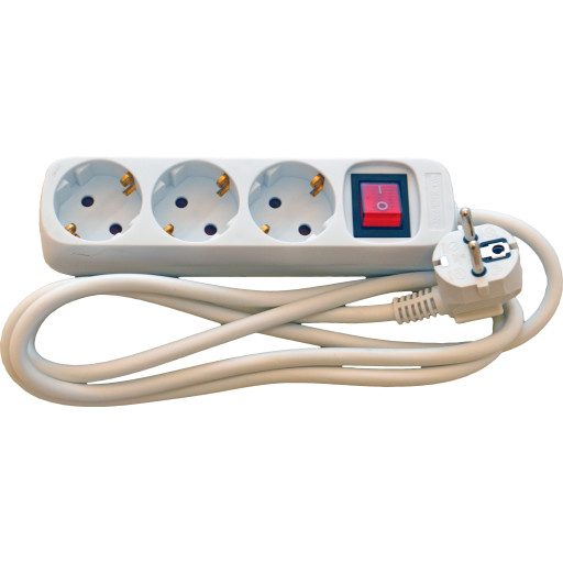 vrige 3-Stikdse Schuko, uden afbryder, 1,5 meter ledning, hvid