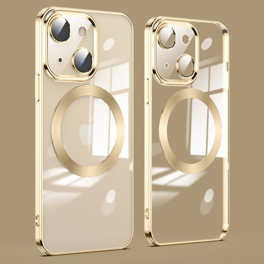 Guess iPhone 13 Pro Skal Transparent MagSafe Metal Guld Outline GUHMP13LHTRMD