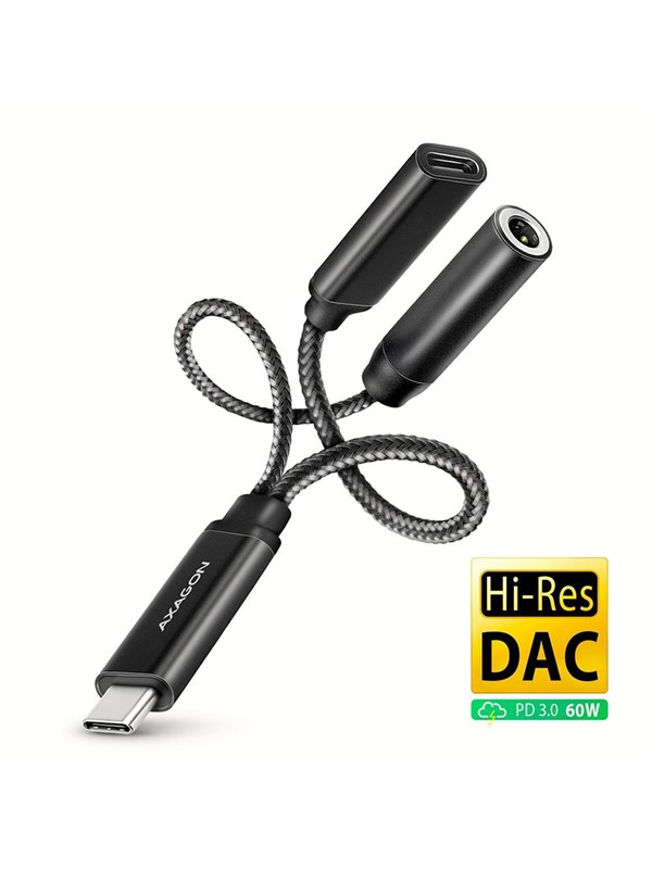 AXAGON Hi-Res DAC Audio Adapter - USB-C to USB-C PD / 3.5 mm Audio Jack (female) - 10 cm