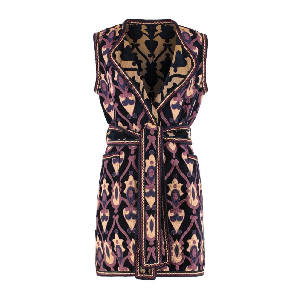 Etro, Jakker , Dame, Flerfarvet, S, Tyl, Ærmeløs jakke med indviklet mønster