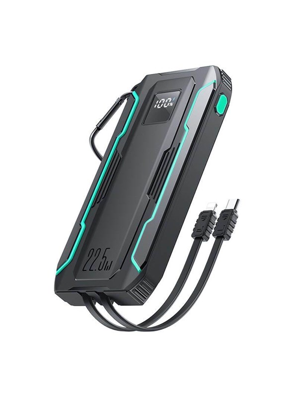 Joyroom JR-PBF29 Mini Powerbank 20.000mAh 22,5W med dobbelte kabler - Sort