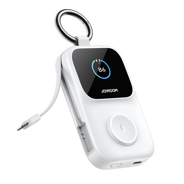 Joyroom JR-PR2 35W 10000mAh Power Bank with Retractable USB-C Cable and Built-in Lightning Cable - White Powerbank - Hvid - 10000 mAh