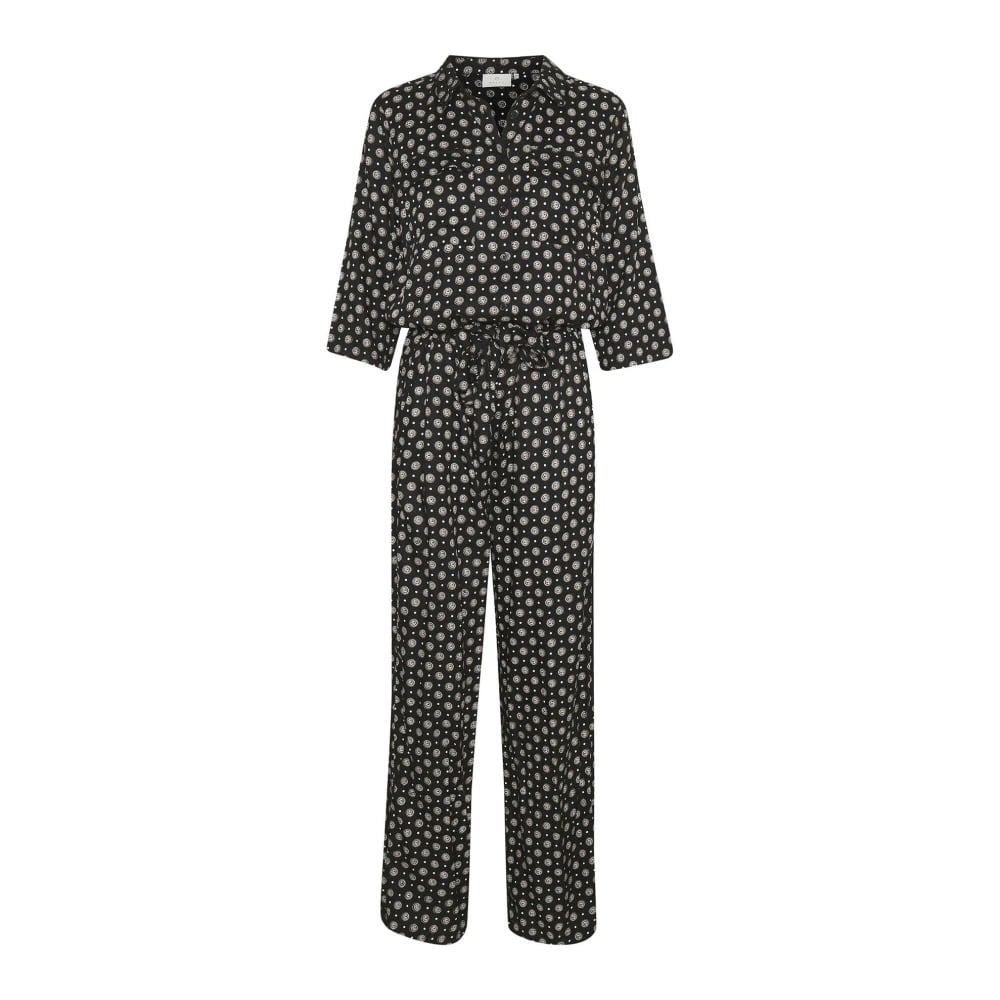 Kaffe, Buksedragter , Dame, Sort, S, Uld, Sort Slips/Prikker Jumpsuit med ¾ Ærmer