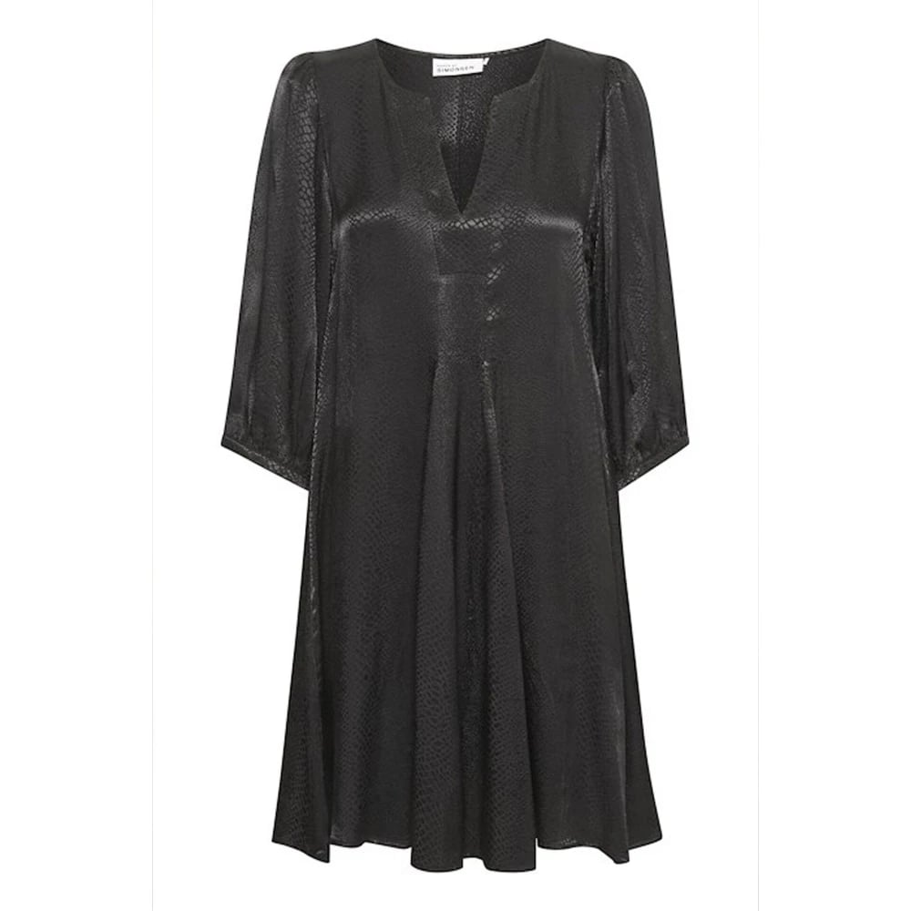 Karen by Simonsen, Kjoler , Dame, Sort, M, Meteorit Print Kjole med 3/4 Ærmer
