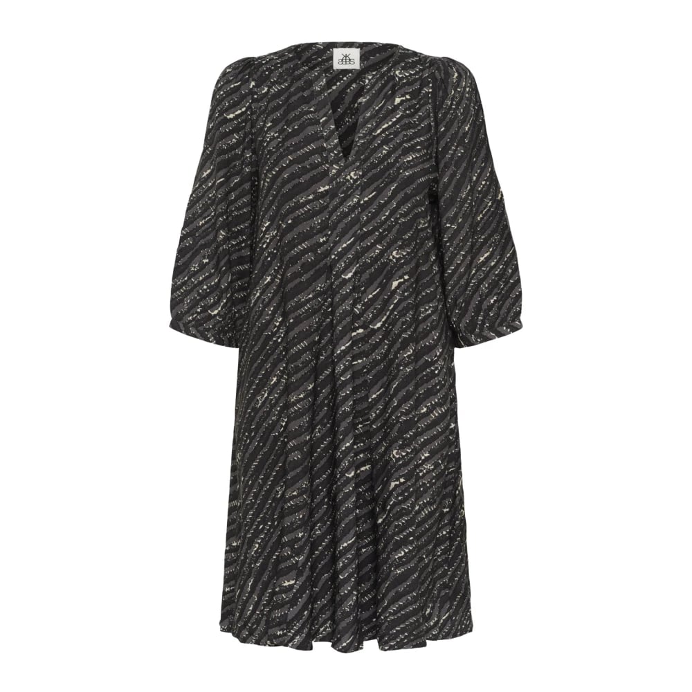 Karen by Simonsen, Kjoler , Dame, Sort, 2XL, Meteorit Print Kjole med 3/4 Ærmer